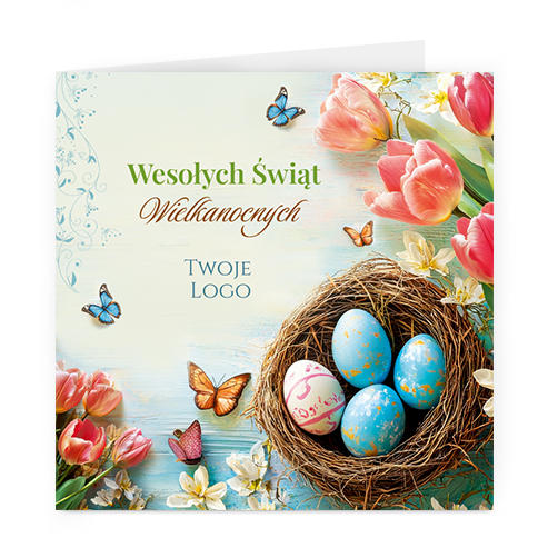 Logo i życzenia są drukowane bezpośrednio na kartce.