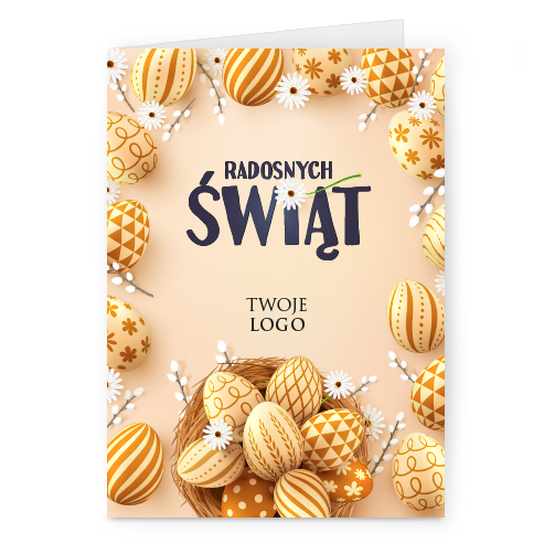 wzór: pion_102 SPECYFIKACJA: Logo i życzenia są drukowane bezpośrednio na kartce. Do każdej kartki dołączona jest biała koperta C6. Istnieje możliwość zmiany haseł na froncie na dowolnie podaną wersję językową. |