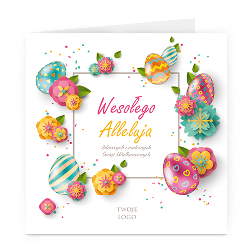 Istnieje możliwość zmiany haseł na froncie na dowolnie podaną wersję językową lub nadrukowanie własnego loga również na froncie kartki.
