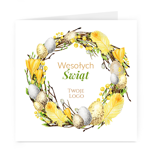 Logo i życzenia są drukowane bezpośrednio na kartce.