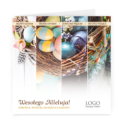 Istnieje możliwość zmiany haseł na froncie na dowolnie podaną wersję językową lub nadrukowanie własnego loga również na froncie kartki.