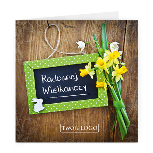 Logo i życzenia są drukowane bezpośrednio na kartce.