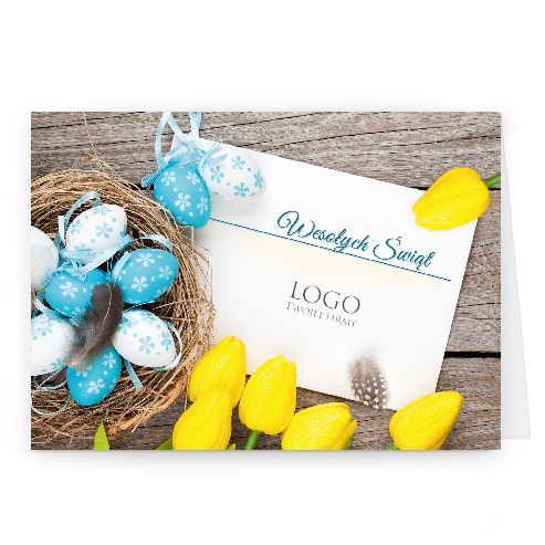 Logo i życzenia są drukowane bezpośrednio na kartce.