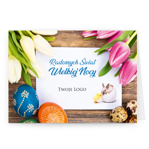 Logo i życzenia są drukowane bezpośrednio na kartce.