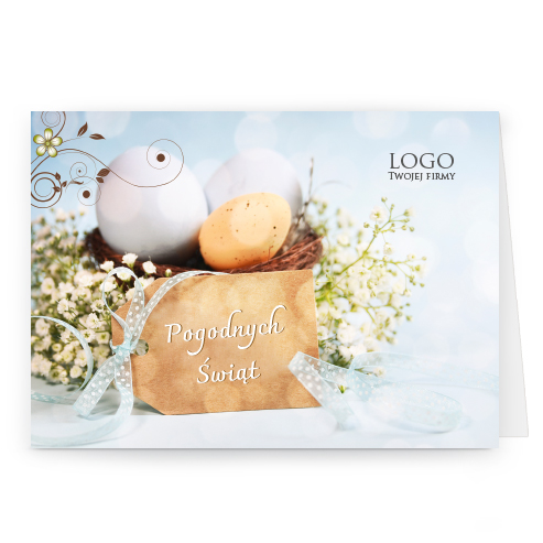 Logo i życzenia są drukowane bezpośrednio na kartce.