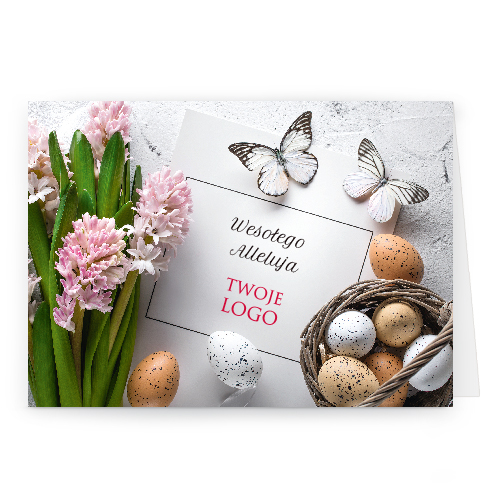 Logo i życzenia są drukowane bezpośrednio na kartce.