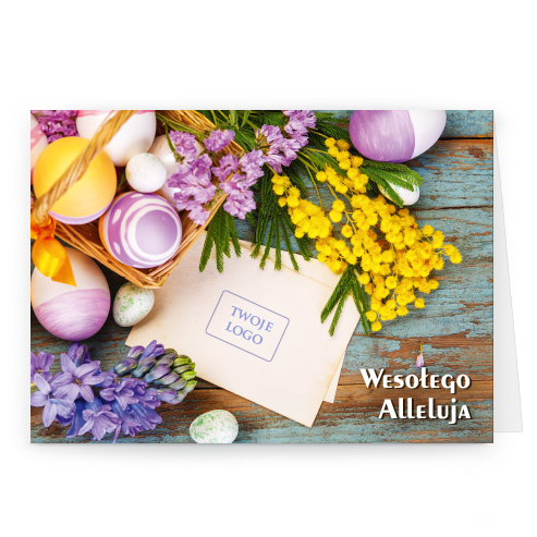 Logo i życzenia są drukowane bezpośrednio na kartce.