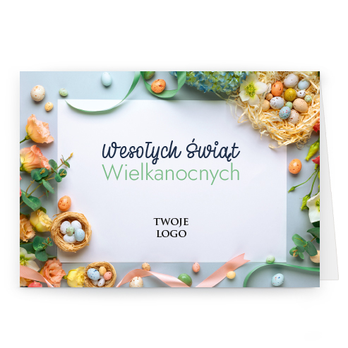 wzór: poziom_56 SPECYFIKACJA: Logo i życzenia są drukowane bezpośrednio na kartce. Do każdej kartki dołączona jest biała koperta C6. Istnieje możliwość zmiany haseł na froncie na dowolnie podaną wersję językową. |