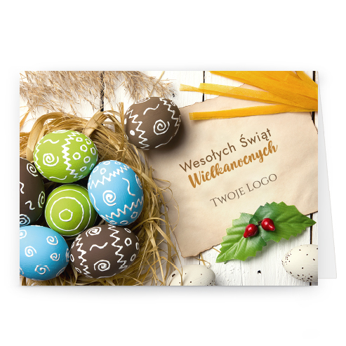 Logo i życzenia są drukowane bezpośrednio na kartce.