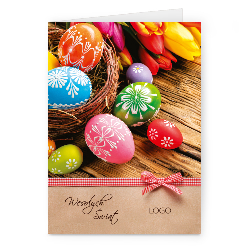 Logo i życzenia są drukowane bezpośrednio na kartce.